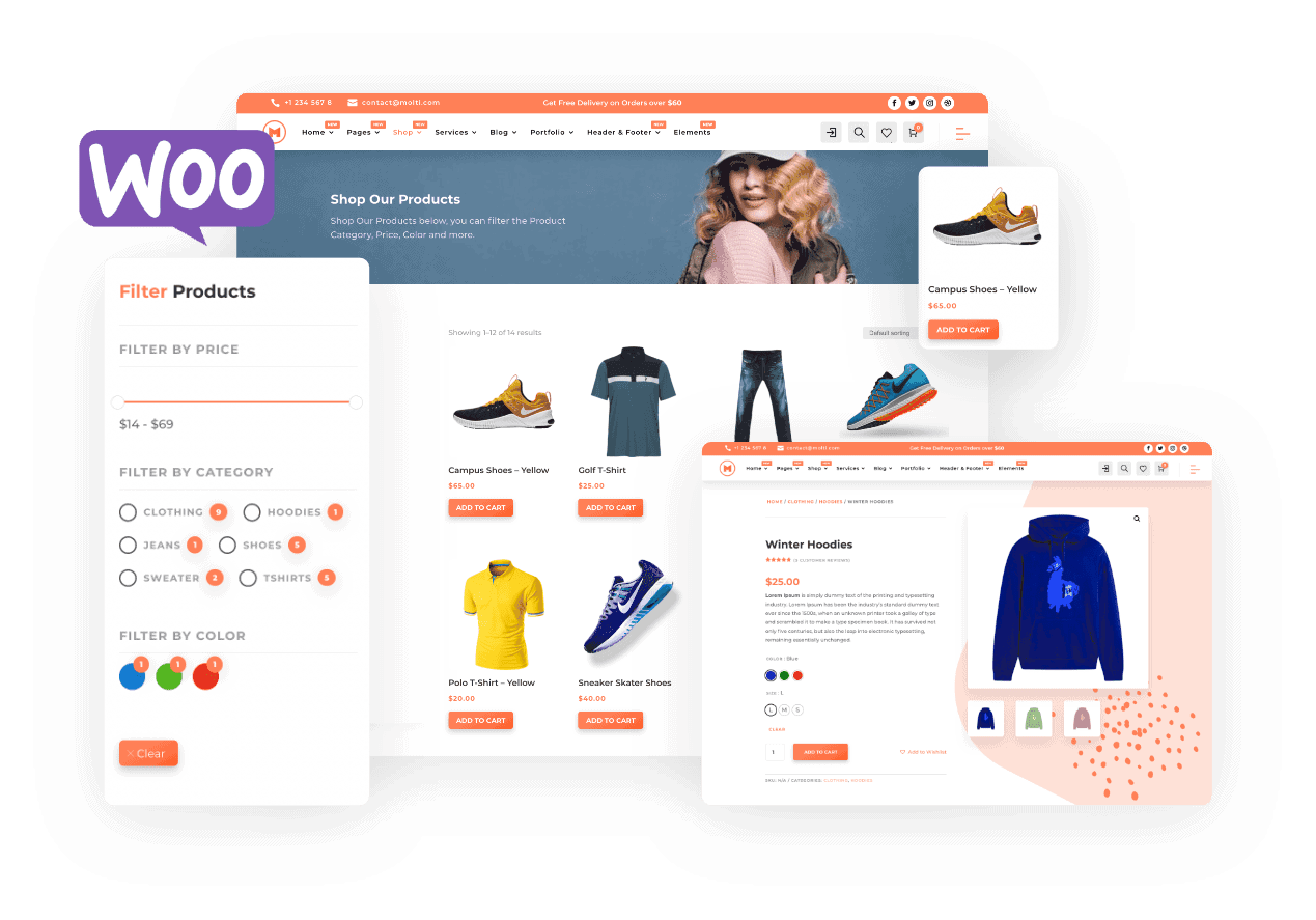Molti Ecommerce is ready for Theme Builder with many Theme Builder Templates.